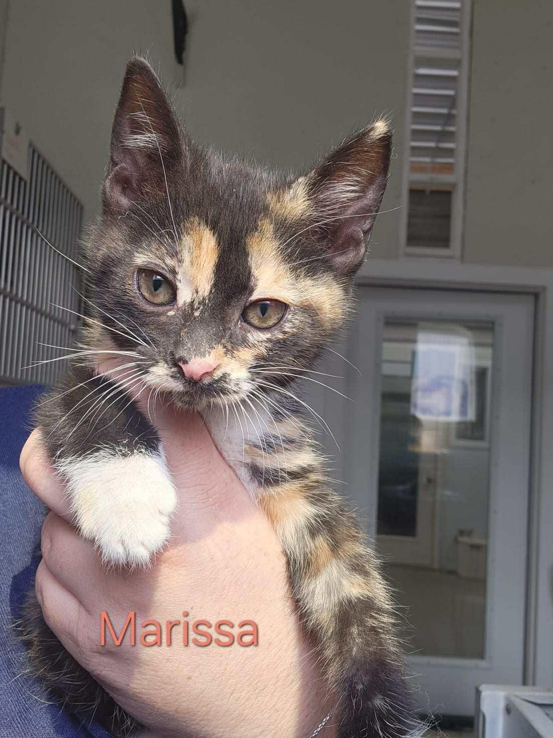 Sweet Marissa was found all by herself and brought into the SPCA. When she first arrived, we figured she was only about 5 weeks old. Estimated birthday June 16, 2025.