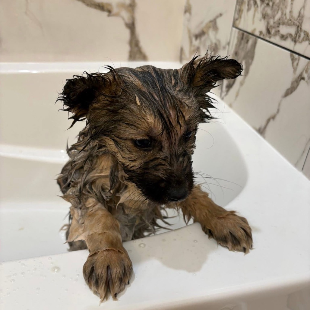 Poppy has a big voice that she is not afraid to use when she has an opinion to share. At the end of the day she curls up in her crate with her sisters for some much needed snuggle time. Poppy is not yet potty trained, but with her curious and clever nature she will learn fast.